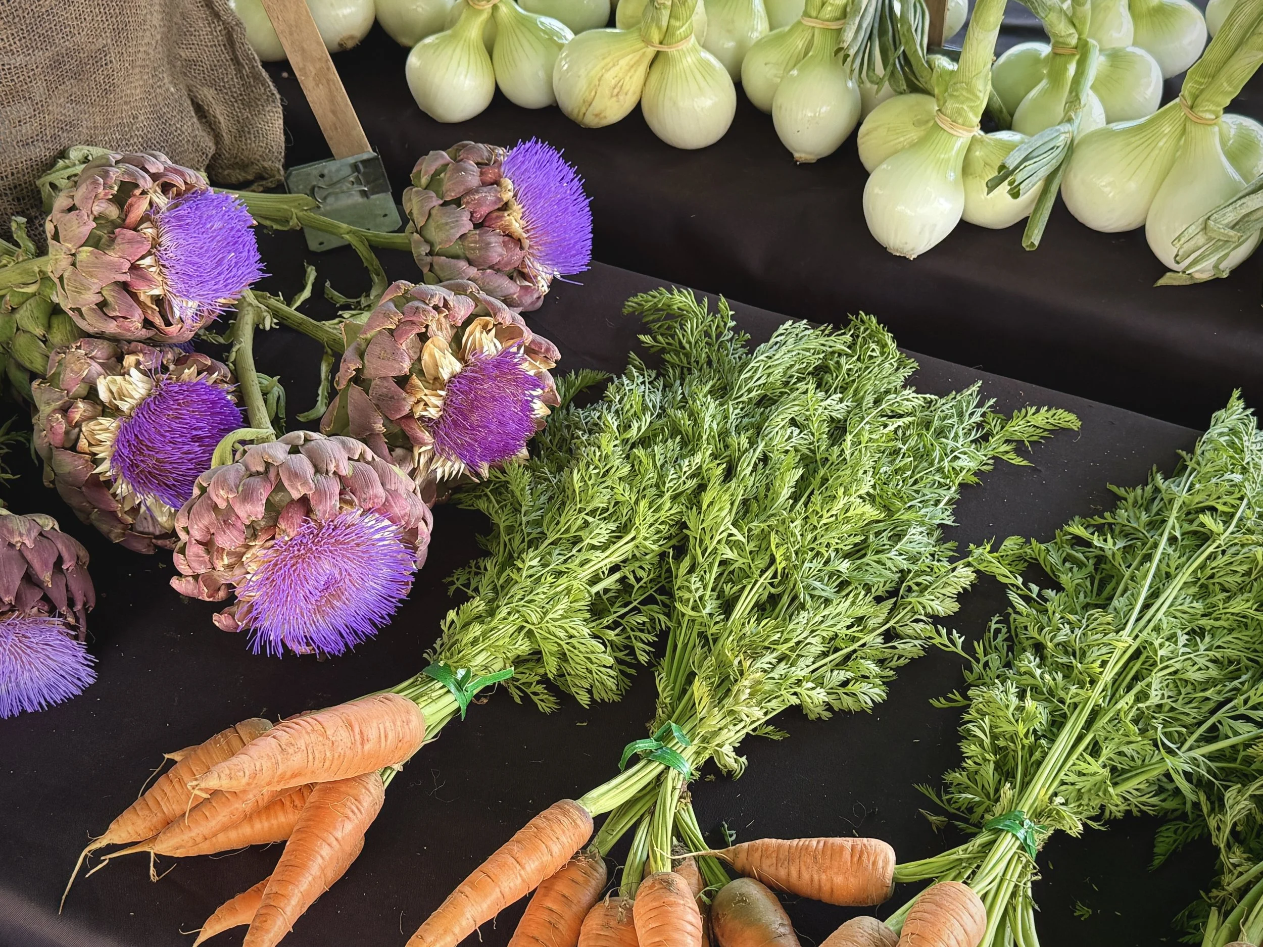 Colossal and formidable is the south tower of the Golden Gate Bridge the morning Emma and I pass the toll plaza on 101. I am struggling to trace the ocean horizon in the distance or even see the tall suspender ropes above us, a sight not uncommon in the early summer, when California is in the throes of the merciless takeover by the Pacific marine layer. It’s a menacing yet breathtaking coup that we get to witness, driving on the bridge on our way to Marin County, where we will first stop by Mill Valley—Emma’s hometown—and then go to San Rafael’s Sunday Marin Farmers’ Market.